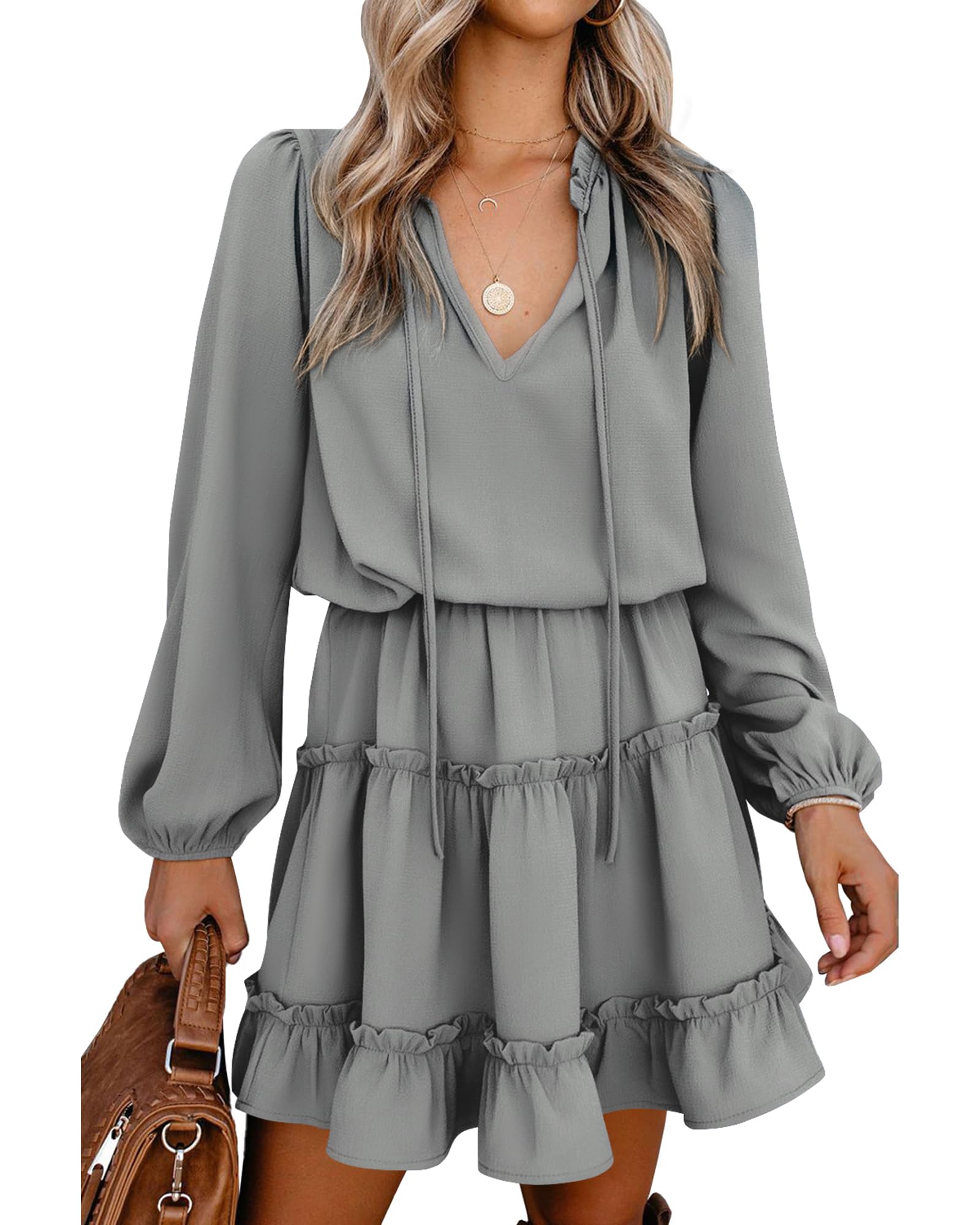 nclook Women's Sweet V-Neck Mini Casual Dress with Pockets Ruffle Short Sleeve